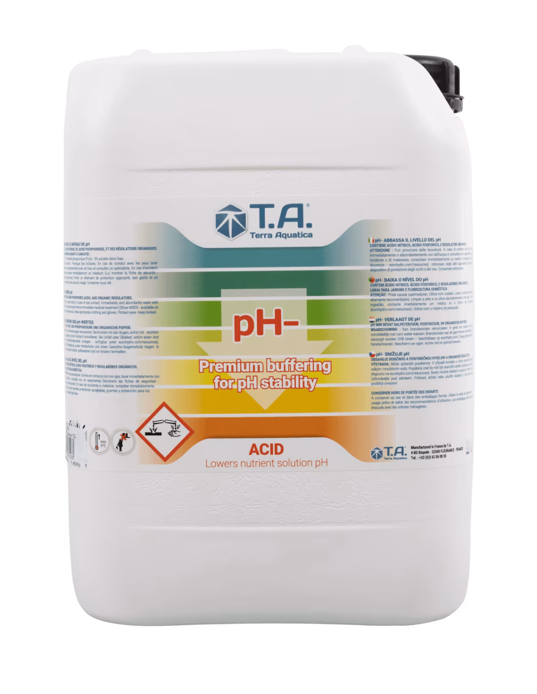 Para diminuir o pH, a Terra Aquatica mistura cuidadosamente três ácidos normalmente usados ​​sozinhos em hidroponia para te dar todos os benefícios de cada um - sem as desvantagens.