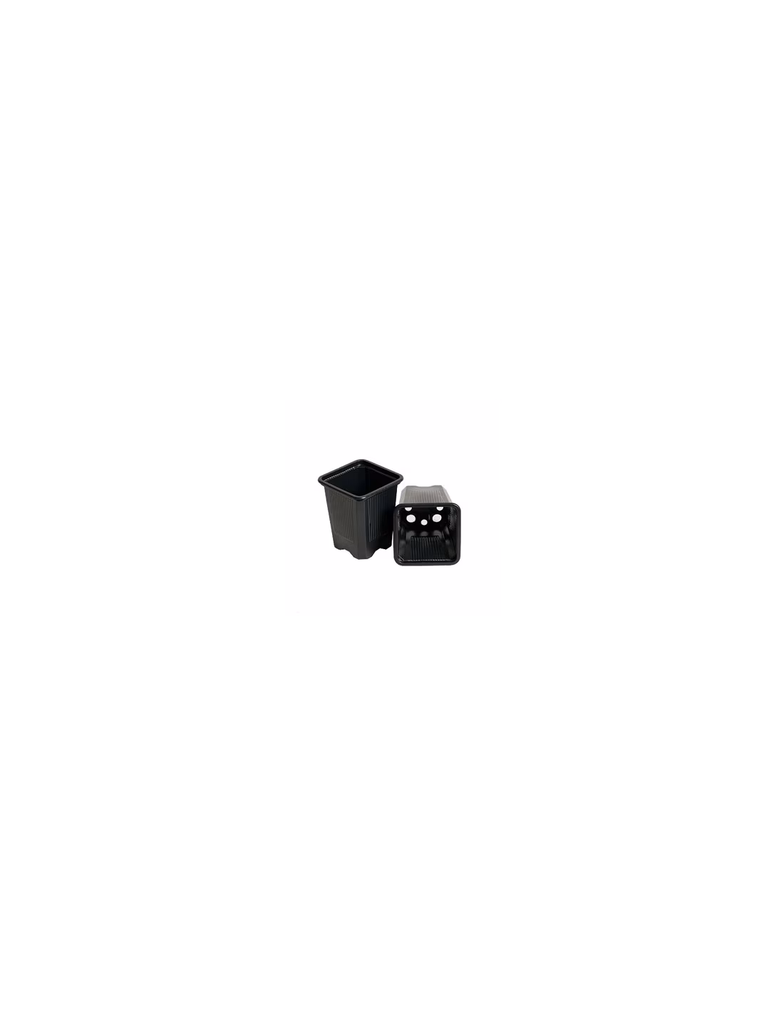Vasos quadrados com fundo elevado para drenagem rápida e ranhuras no interior para evitar o enrolamento das raízes.
